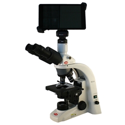 The Motic BA210 biological microscope for clinical, University or Institutional uses with an HD camera and monitor. Includes color corrected infinity optical system.